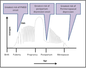 PPD is one of many types of depression that are related to periods of hormonal change. Others include premenstrual dysphoric disorder (PMDD) and perimenopausal depression (PMD). Like PPD, women with these depressions appear to be more sensitive to hormonal changes. This sensitivity can change a person’s epigenetics and gives us a way to measure susceptibility.